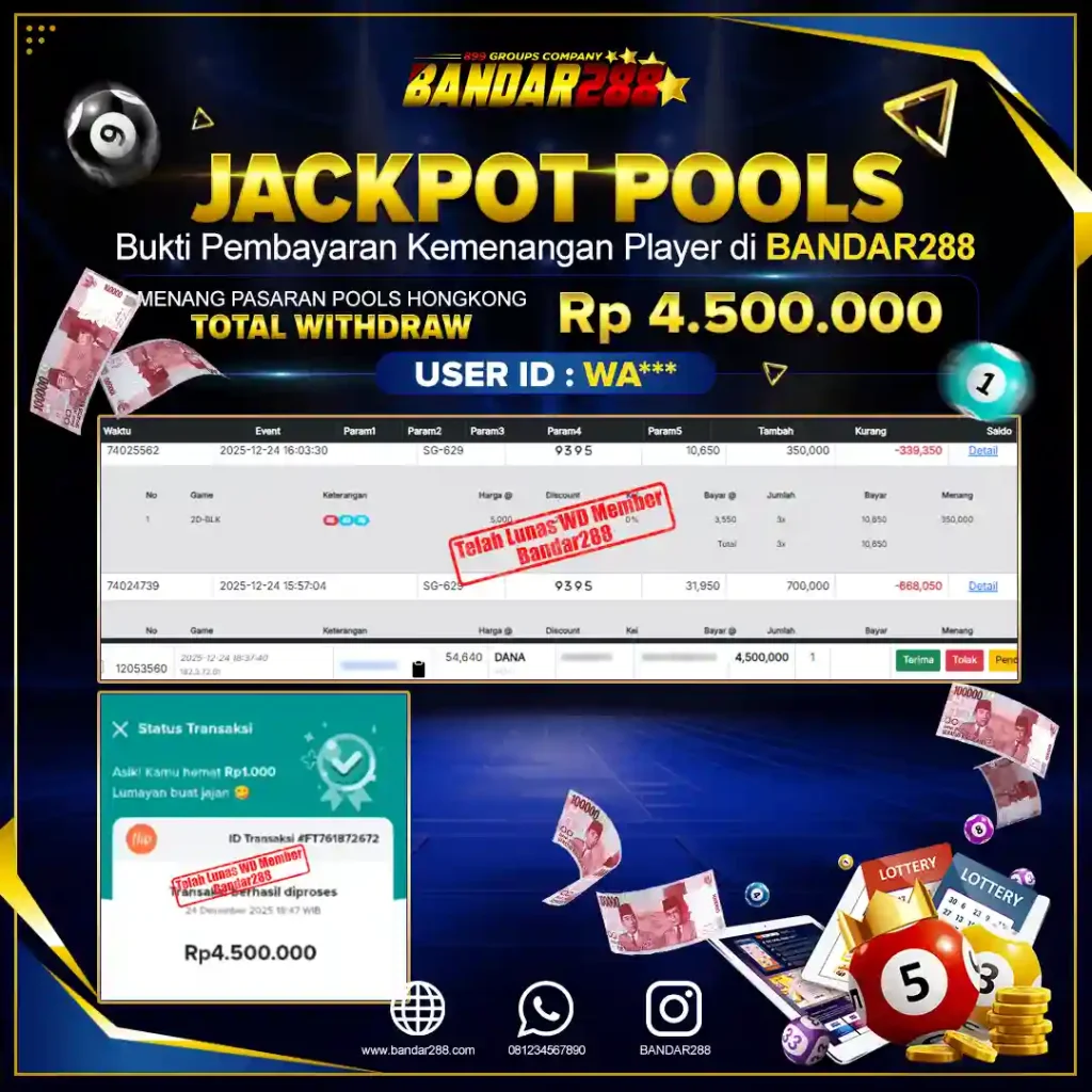 Bukti kemenangan member adalah bukti bahwa anda juga berhak atas semua kemenangan yang ada di situs togel gampang jackpot Bandar288.
