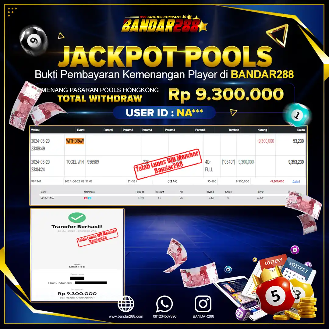Bukti kemenangan member adalah bukti bahwa anda juga berhak atas semua kemenangan yang ada di situs togel gampang jackpot Bandar288.