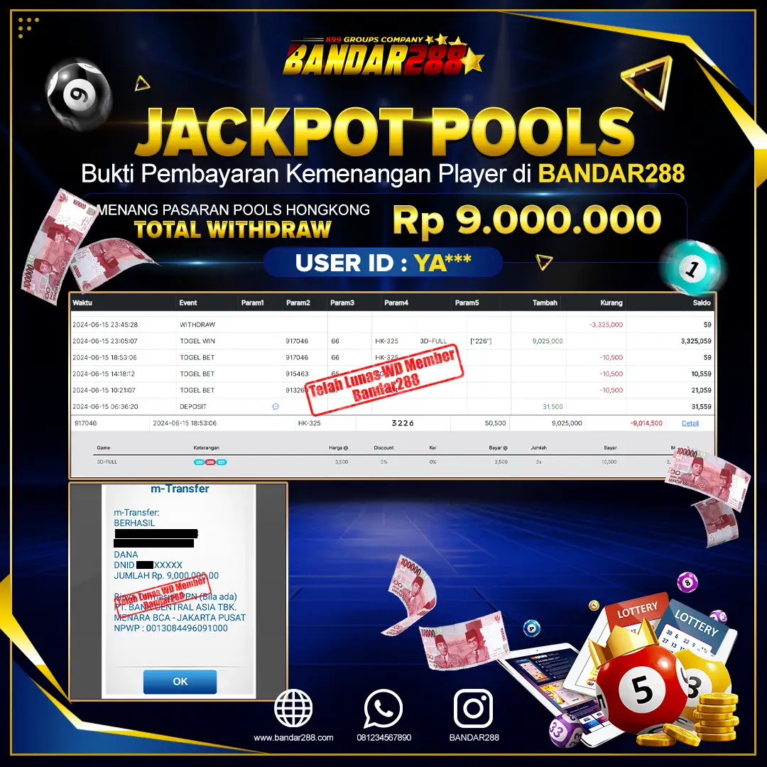 Bukti kemenangan member adalah bukti bahwa anda juga berhak atas semua kemenangan yang ada di situs togel gampang jackpot Bandar288.