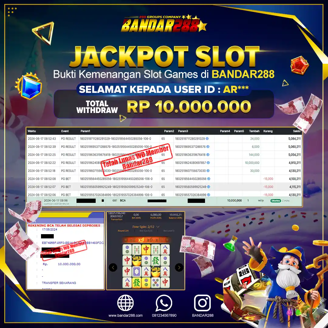 Bukti kemenangan member adalah bukti bahwa anda juga berhak atas semua kemenangan yang ada di situs slot gacor Bandar288. Link